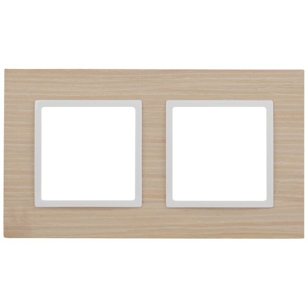 14-5302-01 Рамка на 2 поста, дерево, Elegance, белён.дуб-бел (5/50/1200) Б0049149, Аксессуар для скрытого монтажа