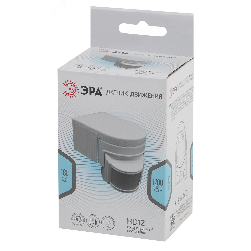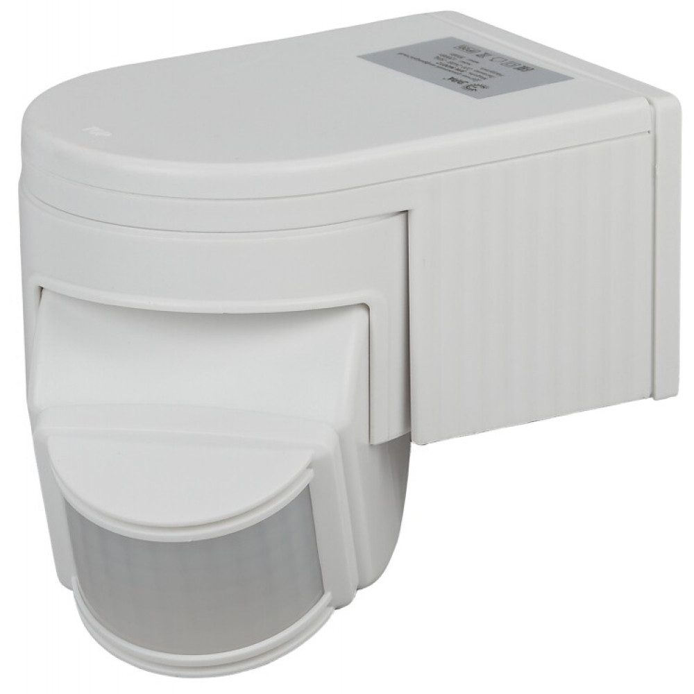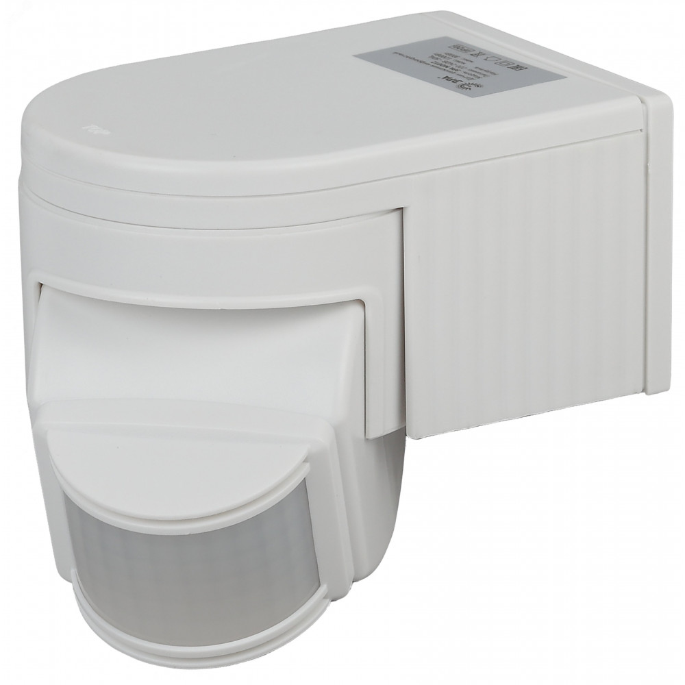 Описание MD 012 Датчик движения белый, макс. нагрузка 1100Вт, угол обзора 180град., дальность 12м, IP44 Б0043789