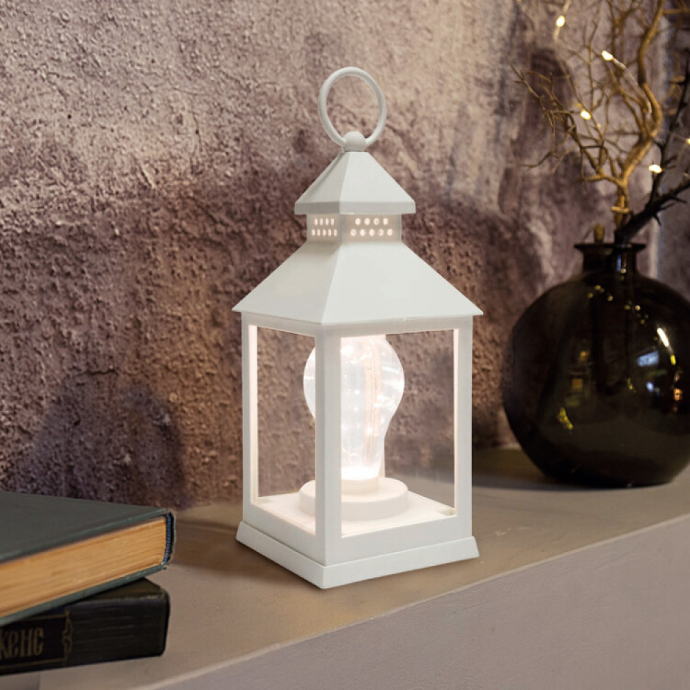 Декоративный фонарь с лампочкой, белый корпус, размер 10,5х10,5х24 см, цвет ТЕПЛЫЙ БЕЛЫЙ 513-052