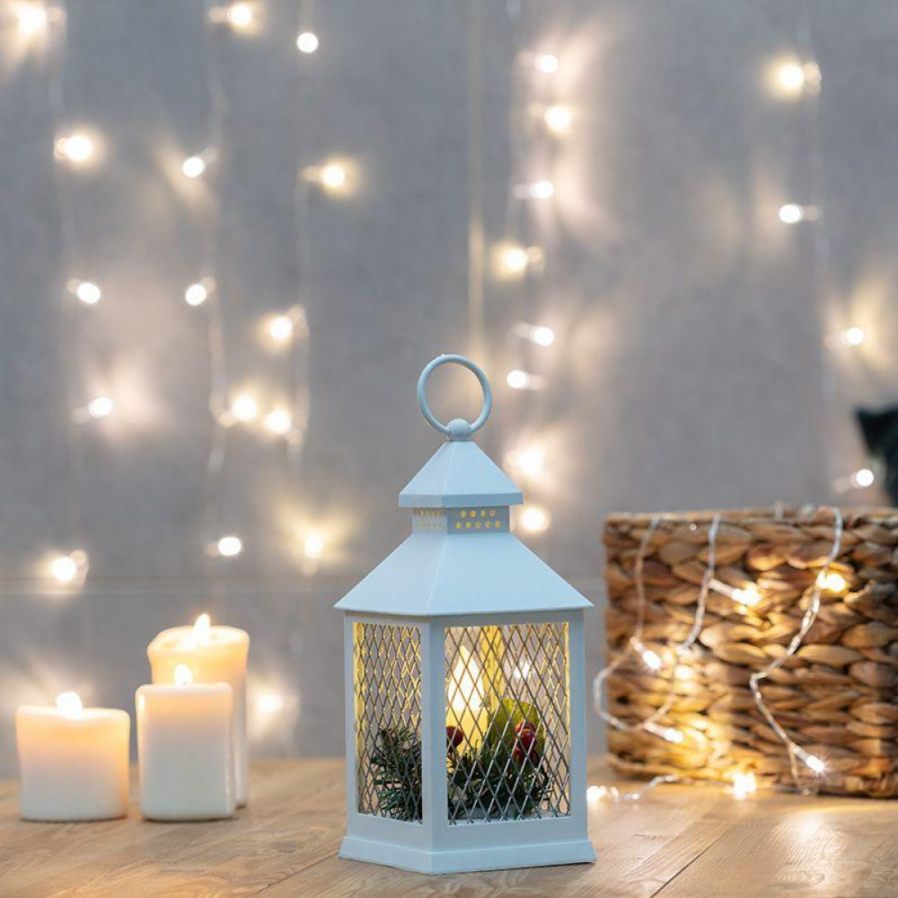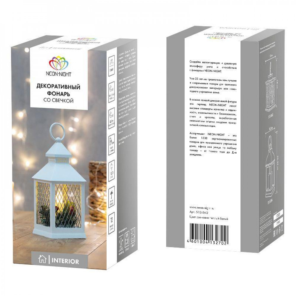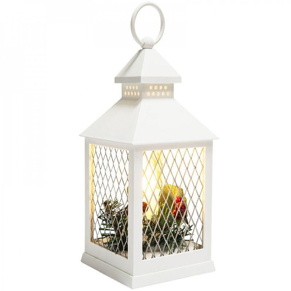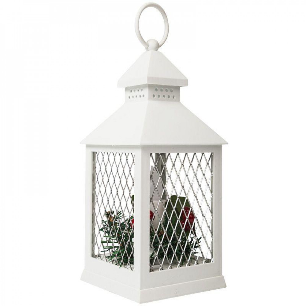 Описание Декоративный фонарь со свечкой, белый корпус, размер 10,5х10,5х24 см, цвет ТЕПЛЫЙ БЕЛЫЙ 513-042