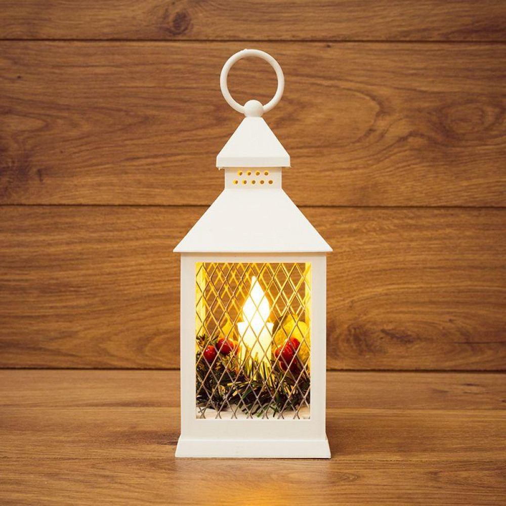 Декоративный фонарь со свечкой, белый корпус, размер 10,5х10,5х24 см, цвет ТЕПЛЫЙ БЕЛЫЙ 513-042