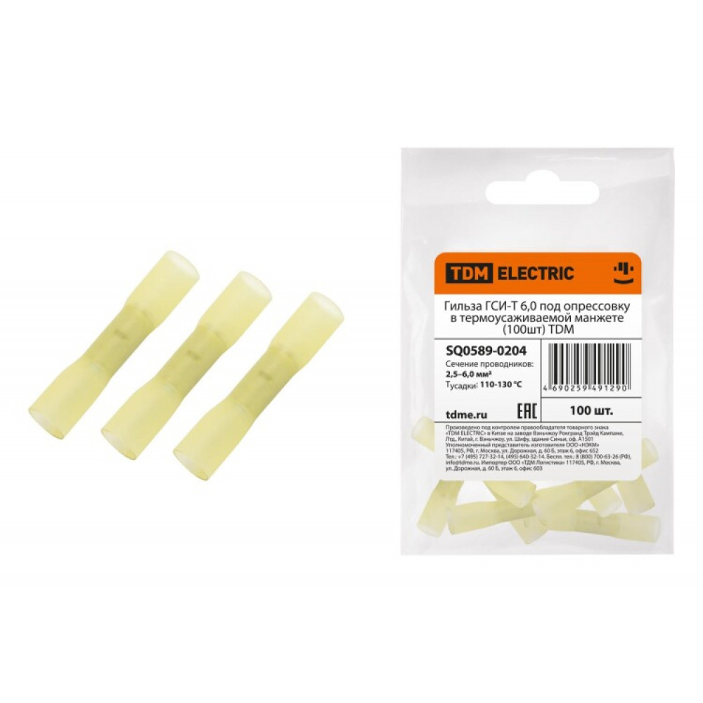 Доставка Гильза ГСИ-Т 6,0 под опрессовку в термоусаживаемой манжете (100шт) SQ0589-0204
