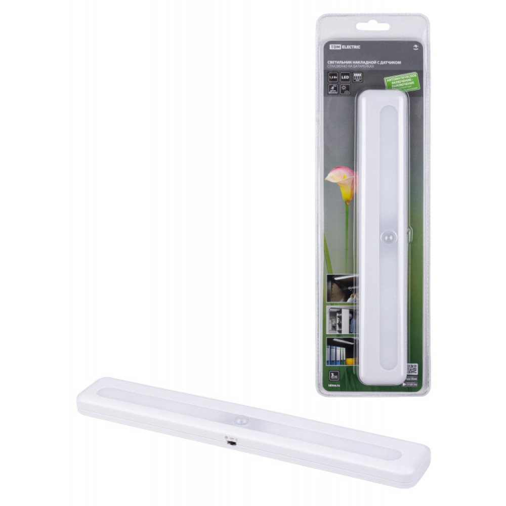 Светильник накладной светодиодный 280х40, 1,5 Вт, 4хАА, дат. движ. и освещ., SQ0329-3616
