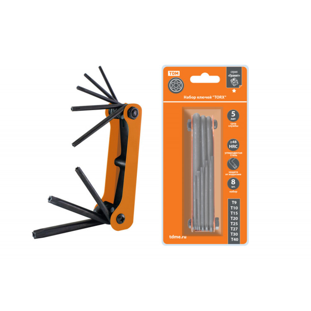 Набор ключей "TORX" раскладной 8 шт.: T9 - T40, углеродистая сталь, блистер "Гранит" SQ1020-0211, Ключ, бита, насадка