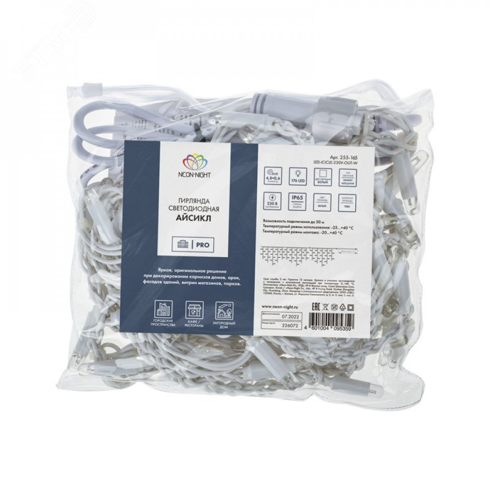 Описание Гирлянда Айсикл 4,8х0,6 м, с эффектом мерцания, белый ПВХ, 176LED, цвет: Белый, 230В 255-165