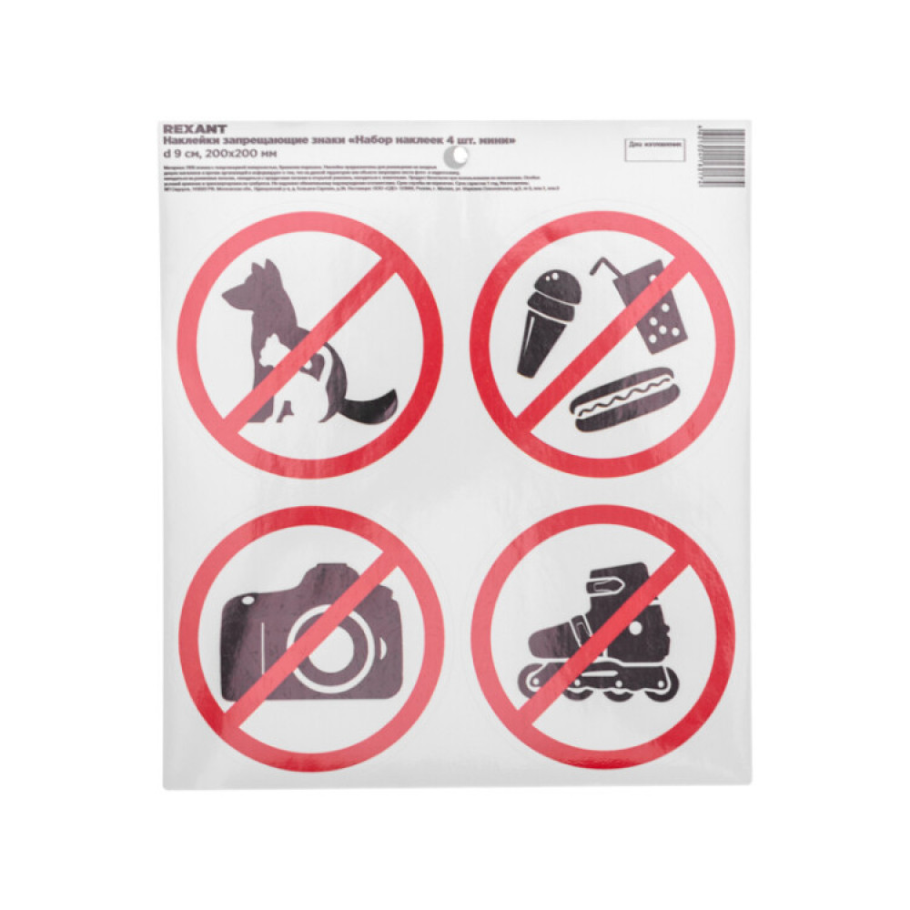 Описание Наклейки запрещающие знаки «Набор наклеек 4 шт. мини- d 9 см» 200х200 мм 56-0040-9