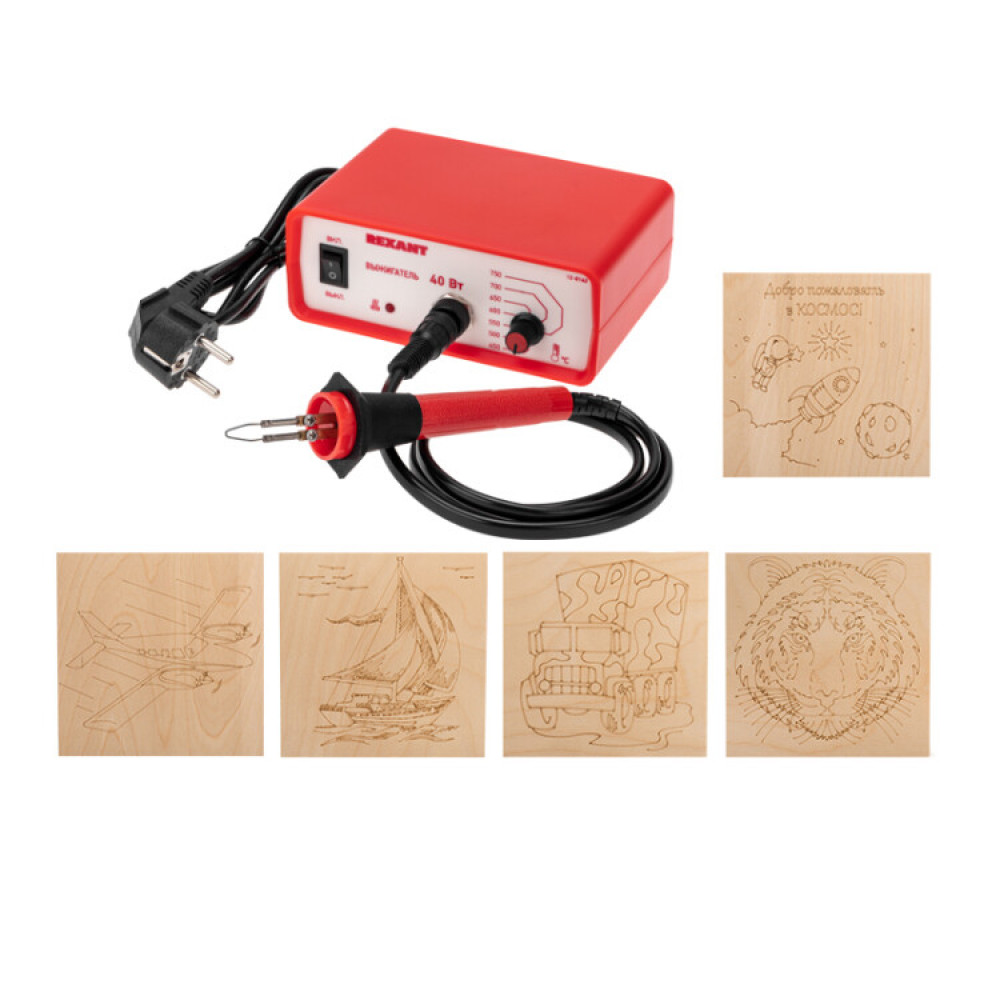 Набор для выжигания REXANT, «Для мальчиков», Выжигатель + 5 досок, 150х150 мм, пакет 12-0929-2, Оборудование и аксессуар для пайки