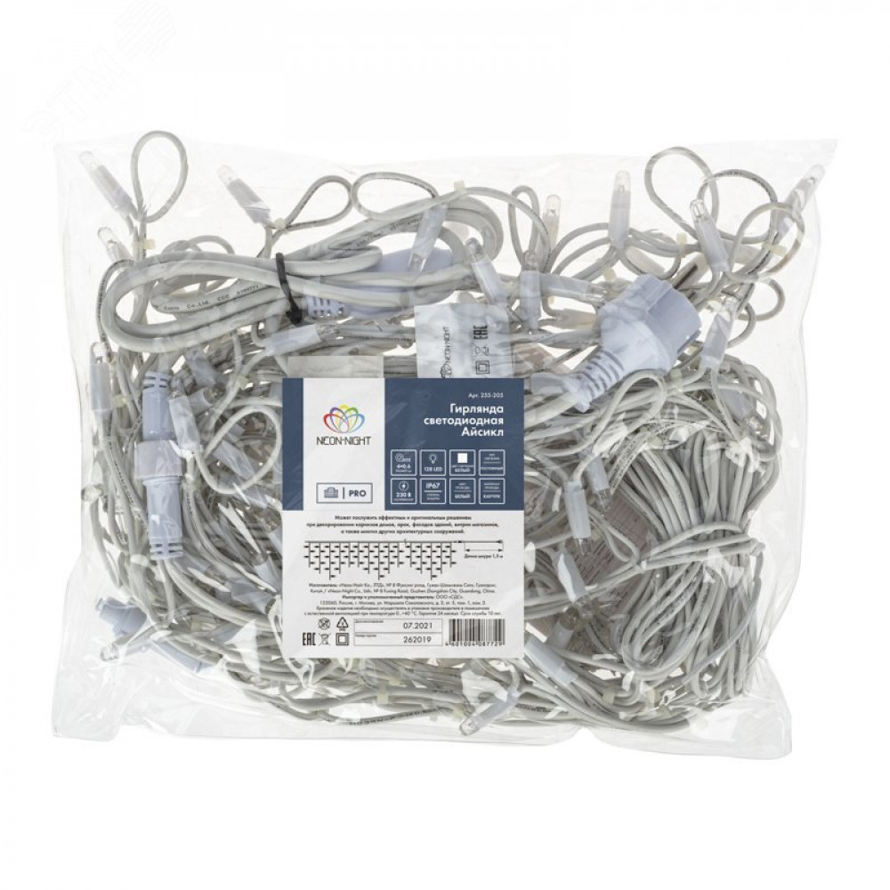 Описание Гирлянда Айсикл (бахрома) светодиодный, 4,0 х 0,6 м, белый провод КАУЧУК, 230 В, диоды белые, 128 LED 255-205
