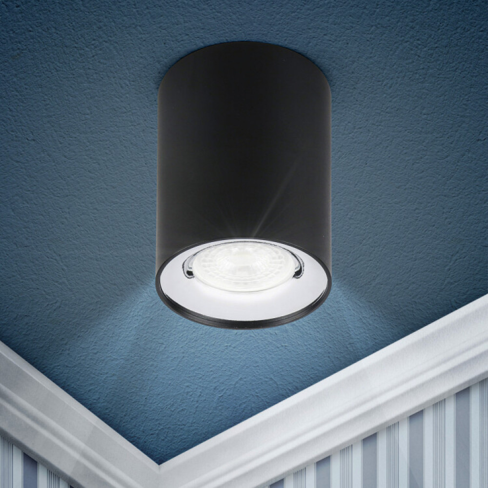 OL1 GU10 BK/CH Подсветка накладной, GU10, D80*100мм, черный/хром (50/900) Б0041502