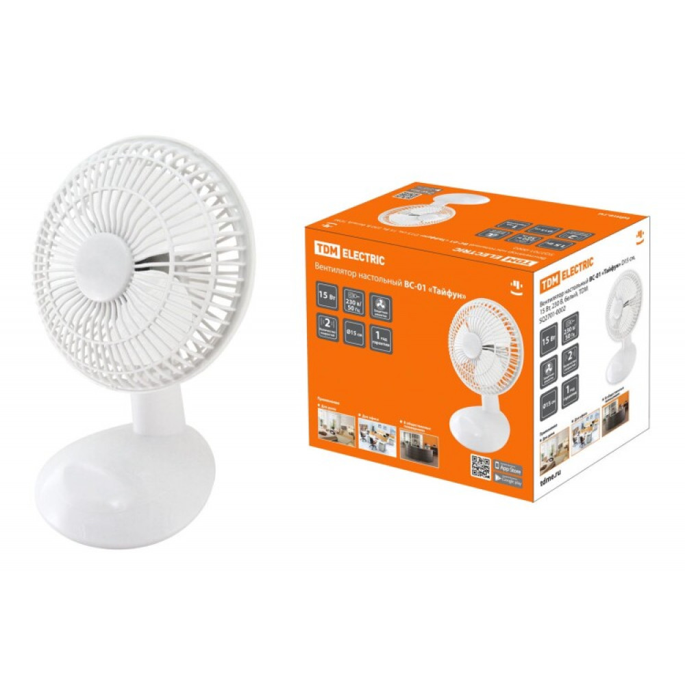 Описание Вентилятор настольный ВС-01 "Тайфун" D15 см, 15 Вт, 230 В, белый, SQ2701-0002