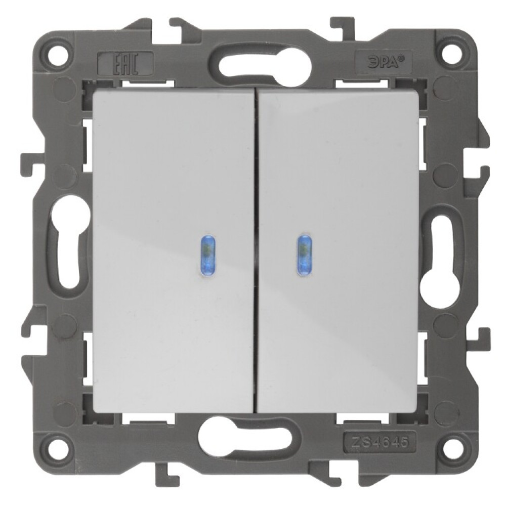 14-1105-01 Выключатель двойной с подсветкой, 10АХ-250В, IP20, Elegance, белый (10/100/3500) Б0034237, Выключатель и переключатель скрытого монтажа