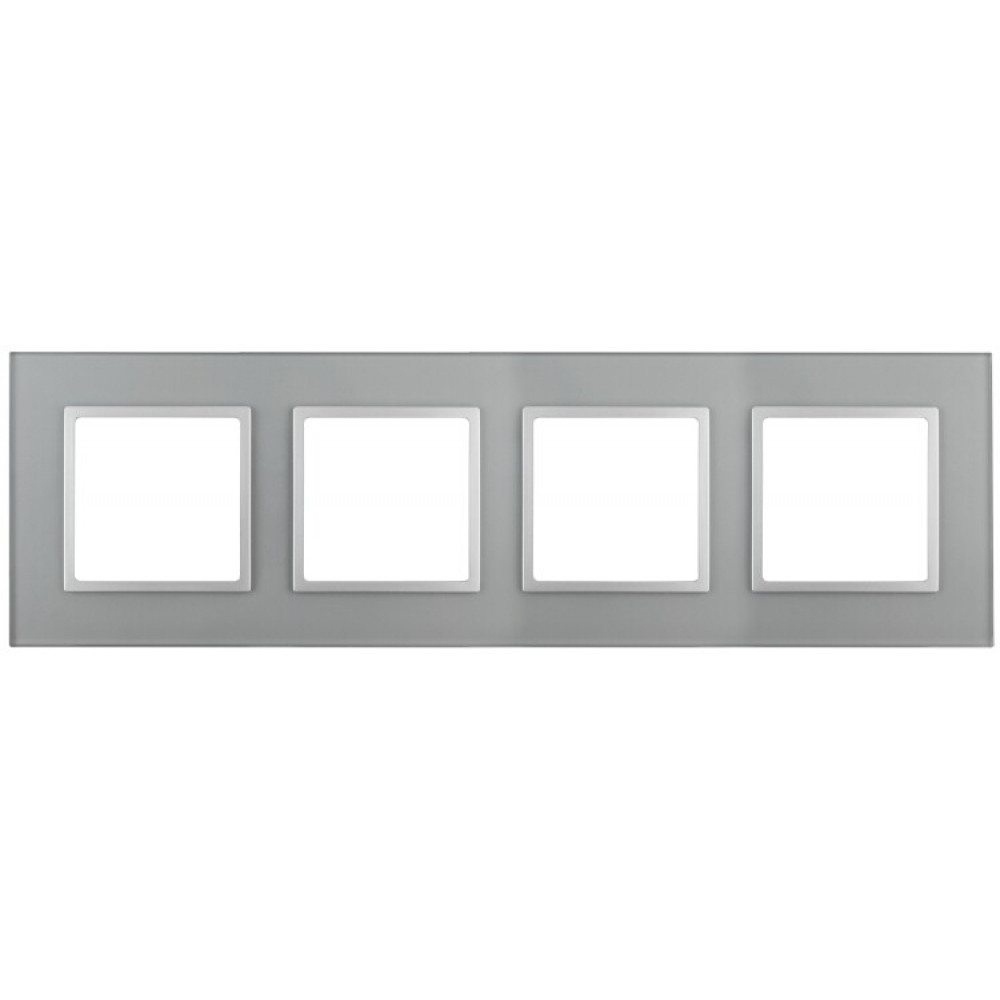 14-5104-03 Рамка на 4 поста, стекло, Elegance, алюминий+алюм (5/25/750) Б0034526, Аксессуар для скрытого монтажа