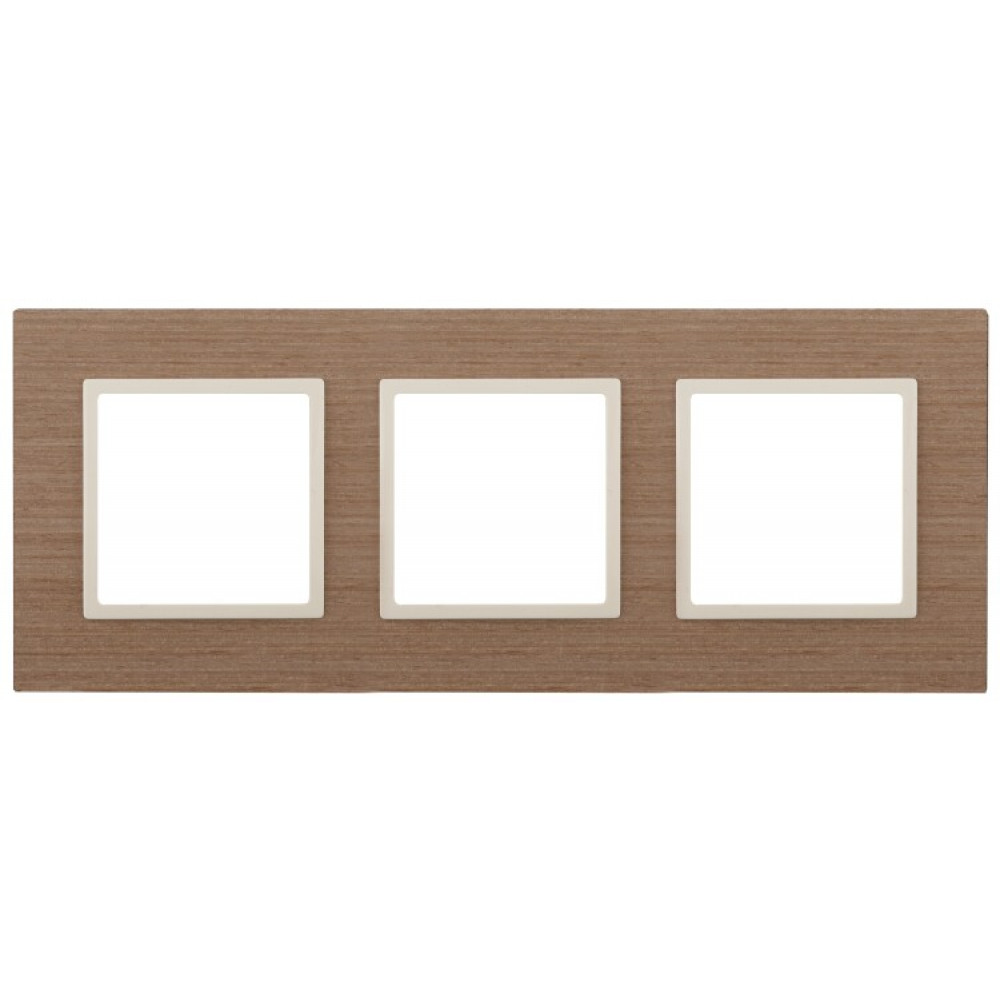 14-5303-07 Рамка на 3 поста, дерево, Elegance, ясень+сл.кость (5/25/750) Б0034578, Аксессуар для скрытого монтажа