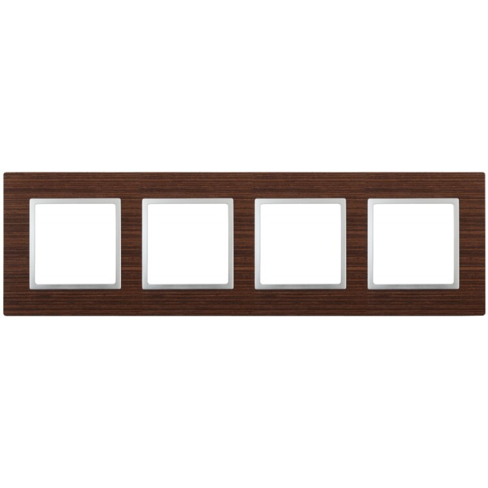 14-5304-10 Рамка на 4 поста, дерево, Elegance, венге+алюм (5/25/750) Б0034587, Аксессуар для скрытого монтажа