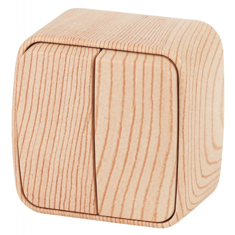 3-104-11 Выключатель двойной, 10А-250В, IP20, ОУ, Polo, сосна (18/360/4320) Б0036105, Выключатель и переключатель открытого монтажа