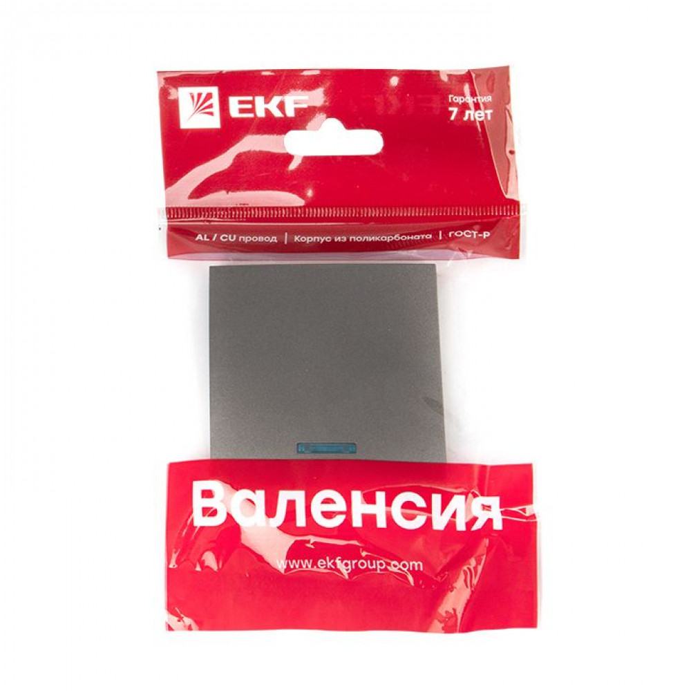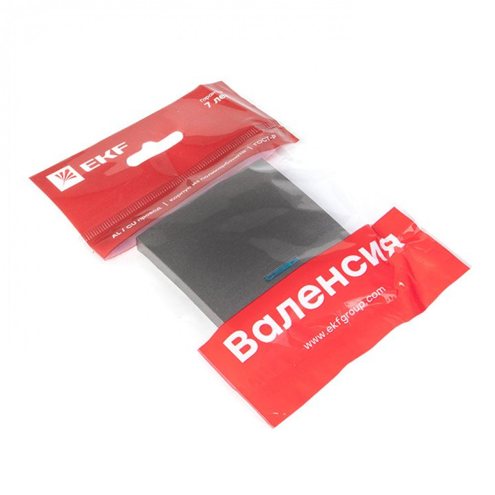 Описание Валенсия лицевая панель выключателя 1-кл. с индикатором 10А графит PROxima ESV10-L-121-60