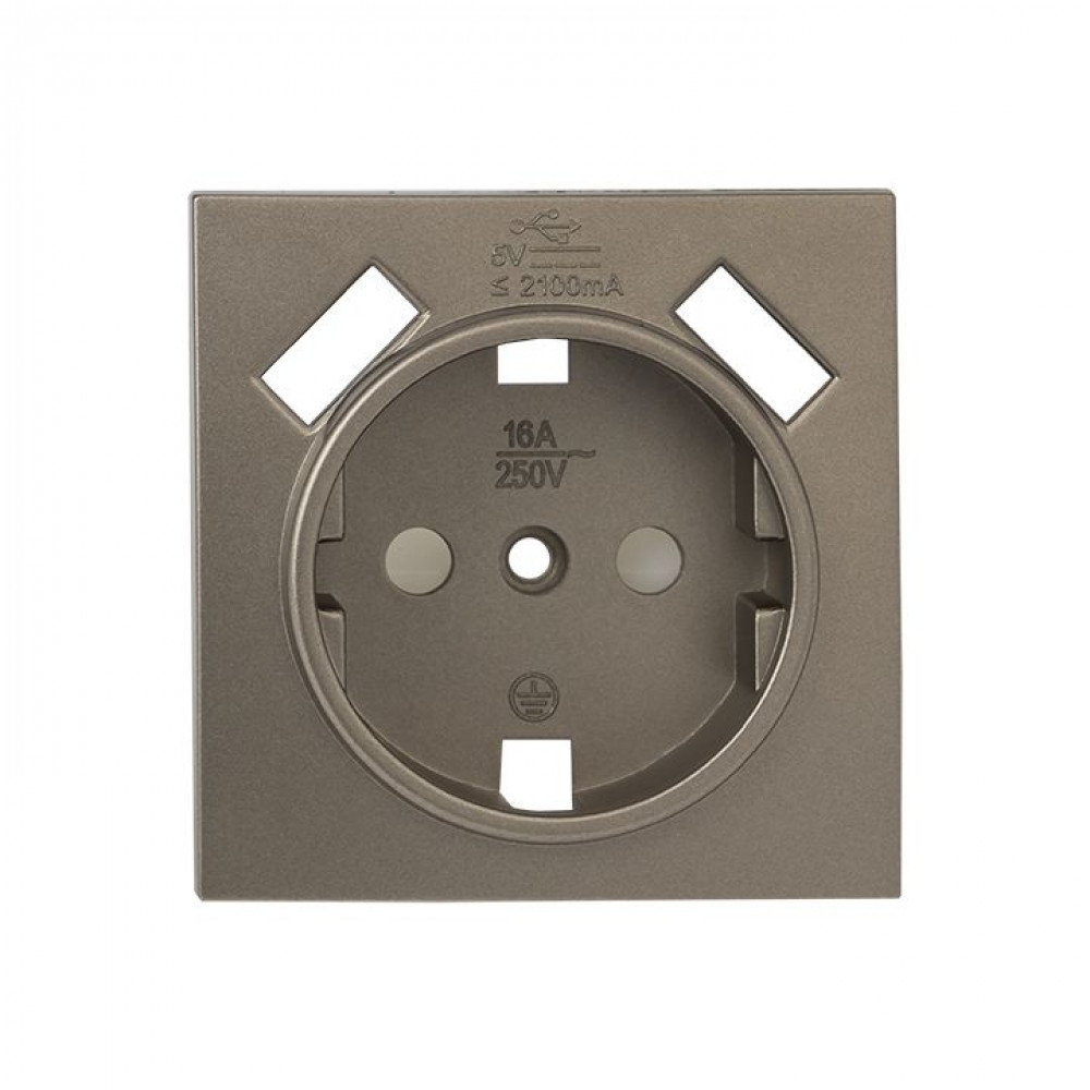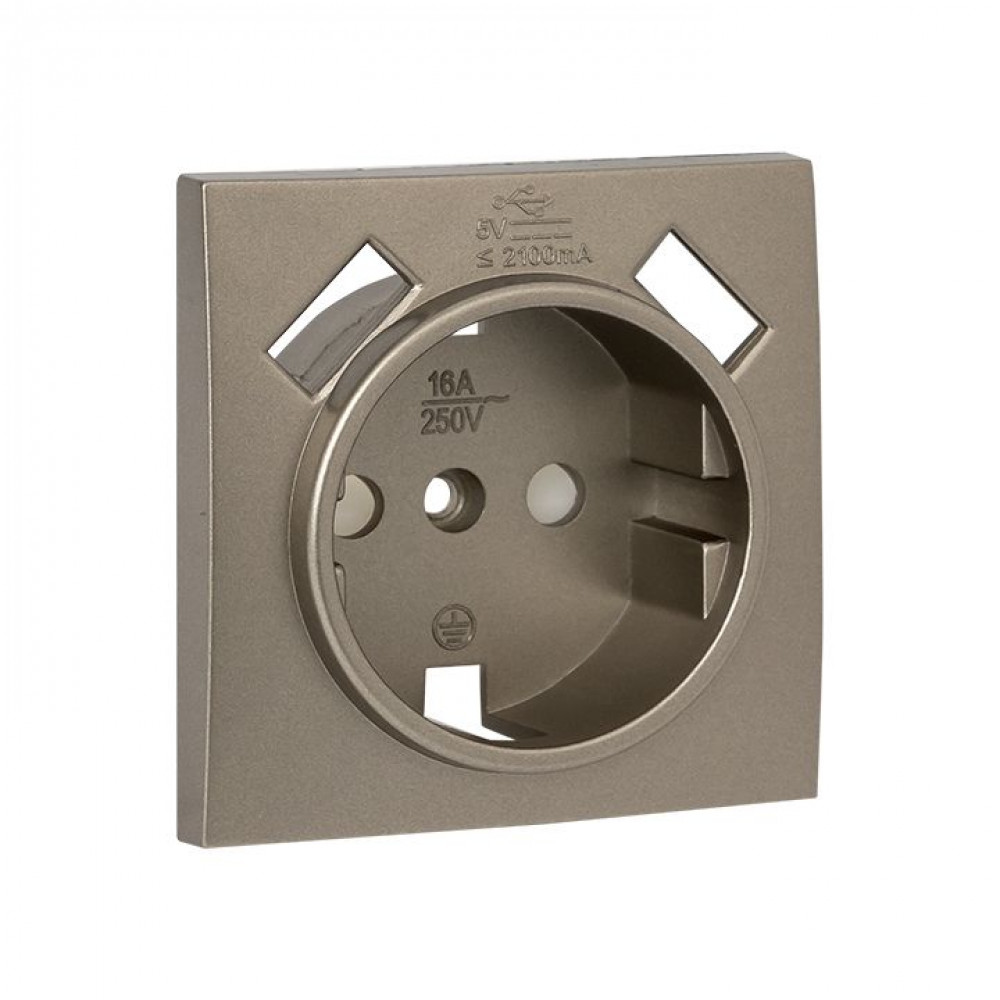 Описание Валенсия лицевая панель розетки 1-местной с/з 16А кашемир с защ. штор. с 2 USB 2,1А PROxima ESR16-L-028-40-2USB