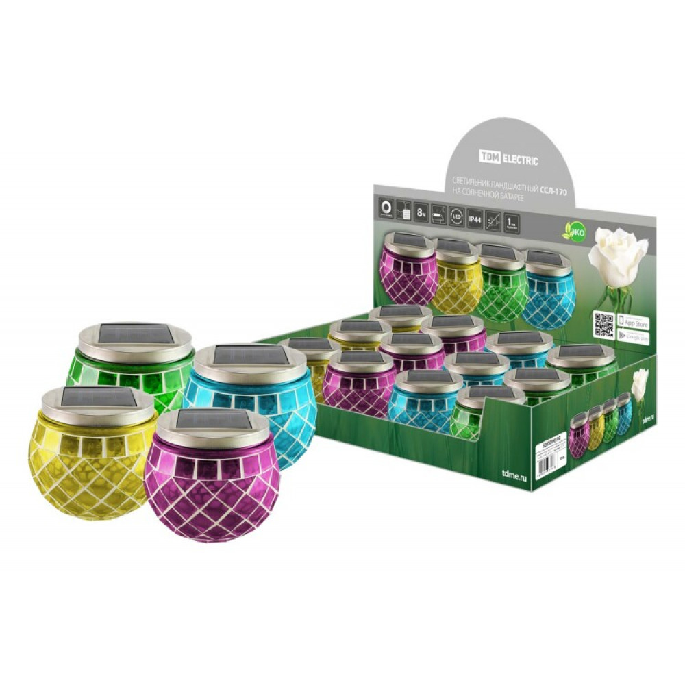 Описание Светильник ландшафтный ССЛ-170 на солн.батарее, 9*9*10,стекло,зеленый,синий,желтый,фиолетовый,ДБ, SQ0330-0193