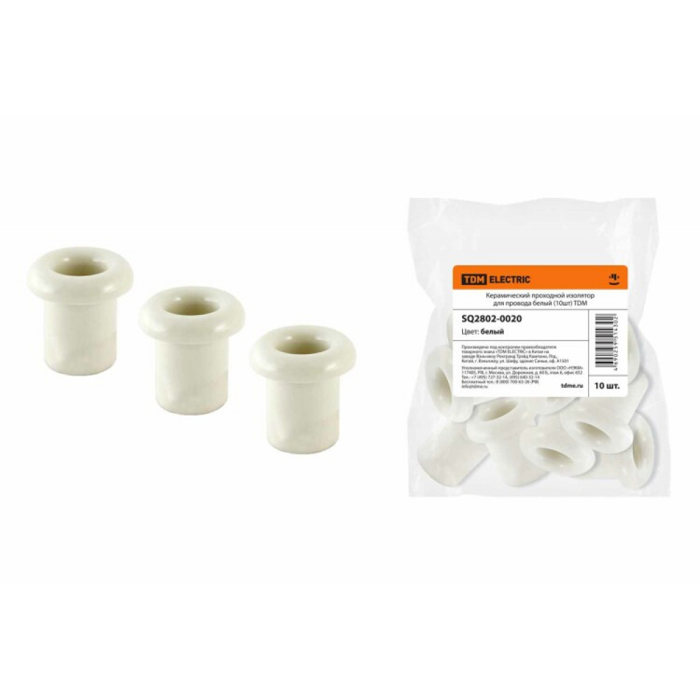 Описание Керамический проходной изолятор для провода белый (10шт) SQ2802-0020