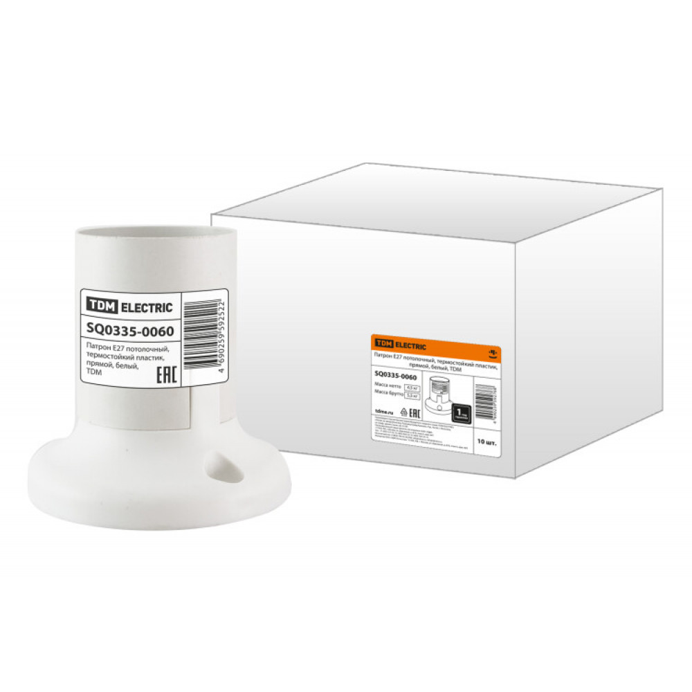 Описание Патрон Е27 потолочный, термостойкий пластик, прямой, белый, SQ0335-0060
