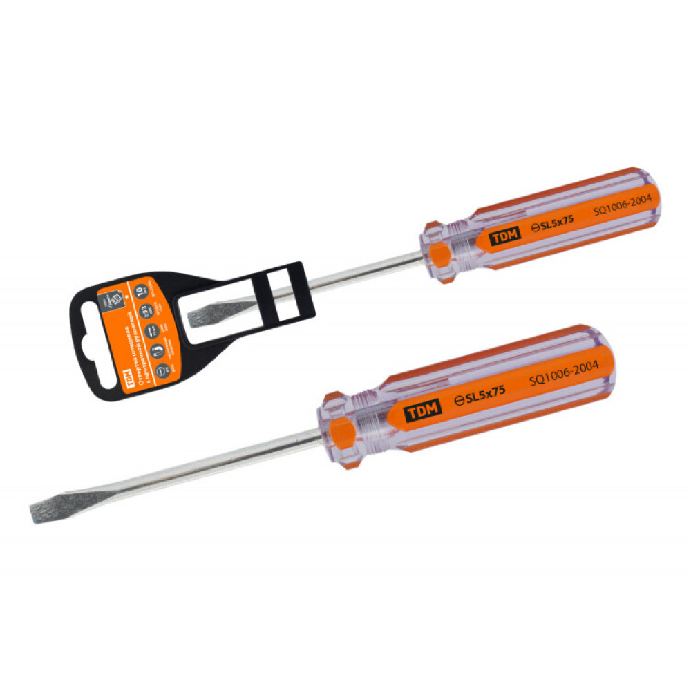 Описание Отвертка шлицевая, прозрачная рукоятка, углеродистая сталь, тип SL5.0 x 75 мм, серия "Гранит" SQ1006-2004