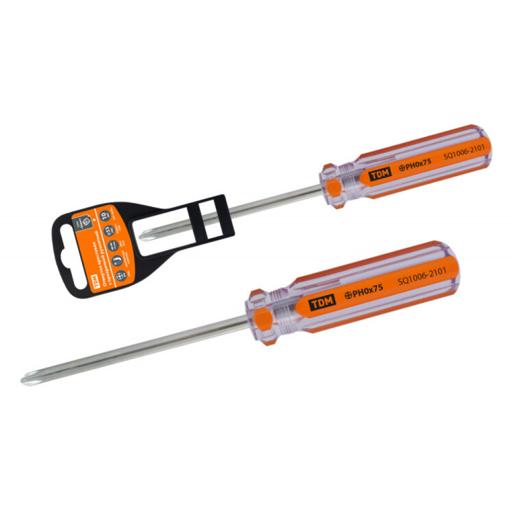 Описание Отвертка крестовая, прозрачная рукоятка, углеродистая сталь, тип PH0 x 75 мм, серия "Гранит" SQ1006-2101