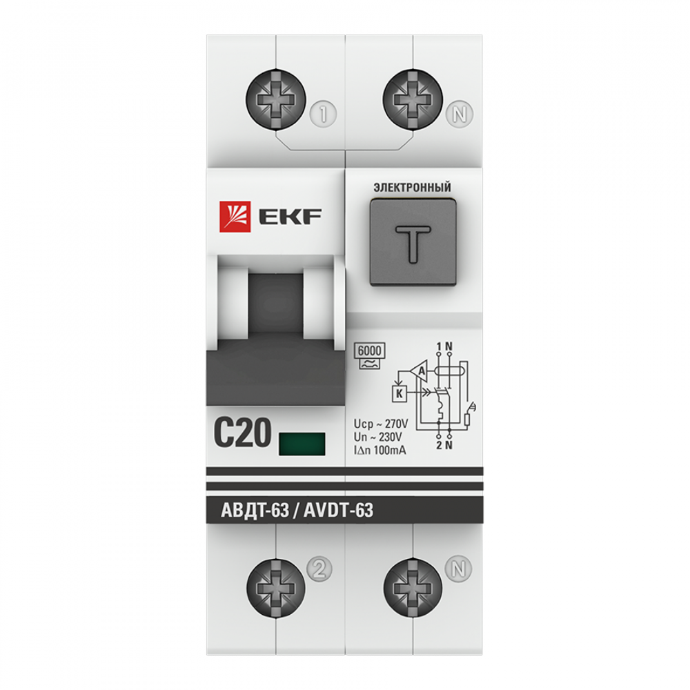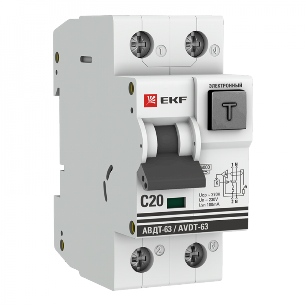 Автоматический выключатель дифференциального тока АВДТ-63 EKF PROxima представляет аппарат, сочетающий функции автоматического выключателя с электромеханическим или электронным УЗО. При обнаружении автоматическим выключателем в защищаемом участке сети тока утечки (повреждения) на землю или сверхтока (тока перегрузки иликороткого замыкания) происходит срабатывание устройства, приводящее к отключению защищаемой сети. Возможна коммутация алюминиевым и медным проводником.Автоматический выключатель дифференциального тока малогабаритный АВДТ-63М EKF PROxima представляет аппарат, сочетающий функции автоматического выключателя с электронным УЗО типа АС в компактном корпусе шириной один модуль. При обнаружении автоматическим выключателем на защищаемом участке сети тока утечки (повреждения) на землю или сверхтока (тока перегрузки или короткого замыкания) происходит срабатывание устройства, приводящее к отключению защищаемой сети. Особое отличие дифференциальных автоматических выключателей EKF с электронным УЗО – в наличии блока защиты от перенапряжения. Возможна коммутация алюминиевым и медным проводом.