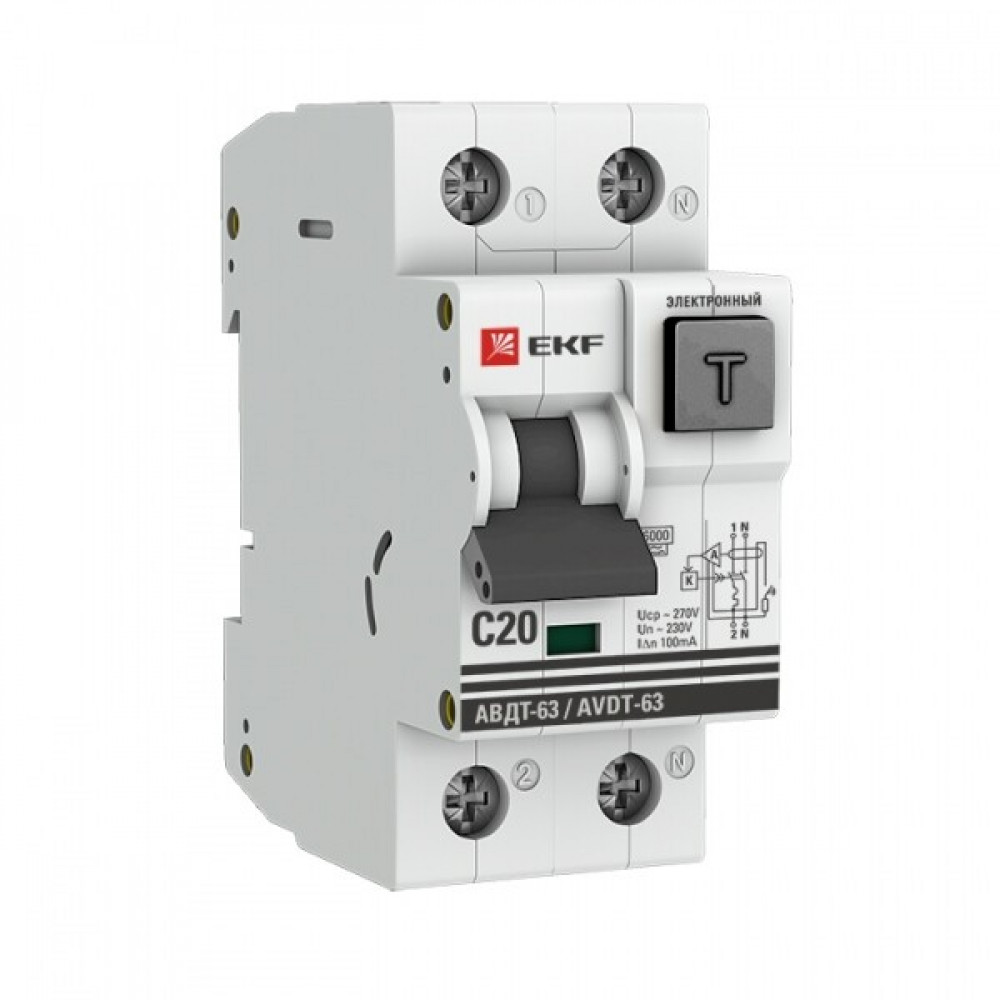 Описание Дифференциальный автомат АВДТ-63 20А/100мА (характеристика С, электронный, тип А) 6кА PROxima DA63-20-100e