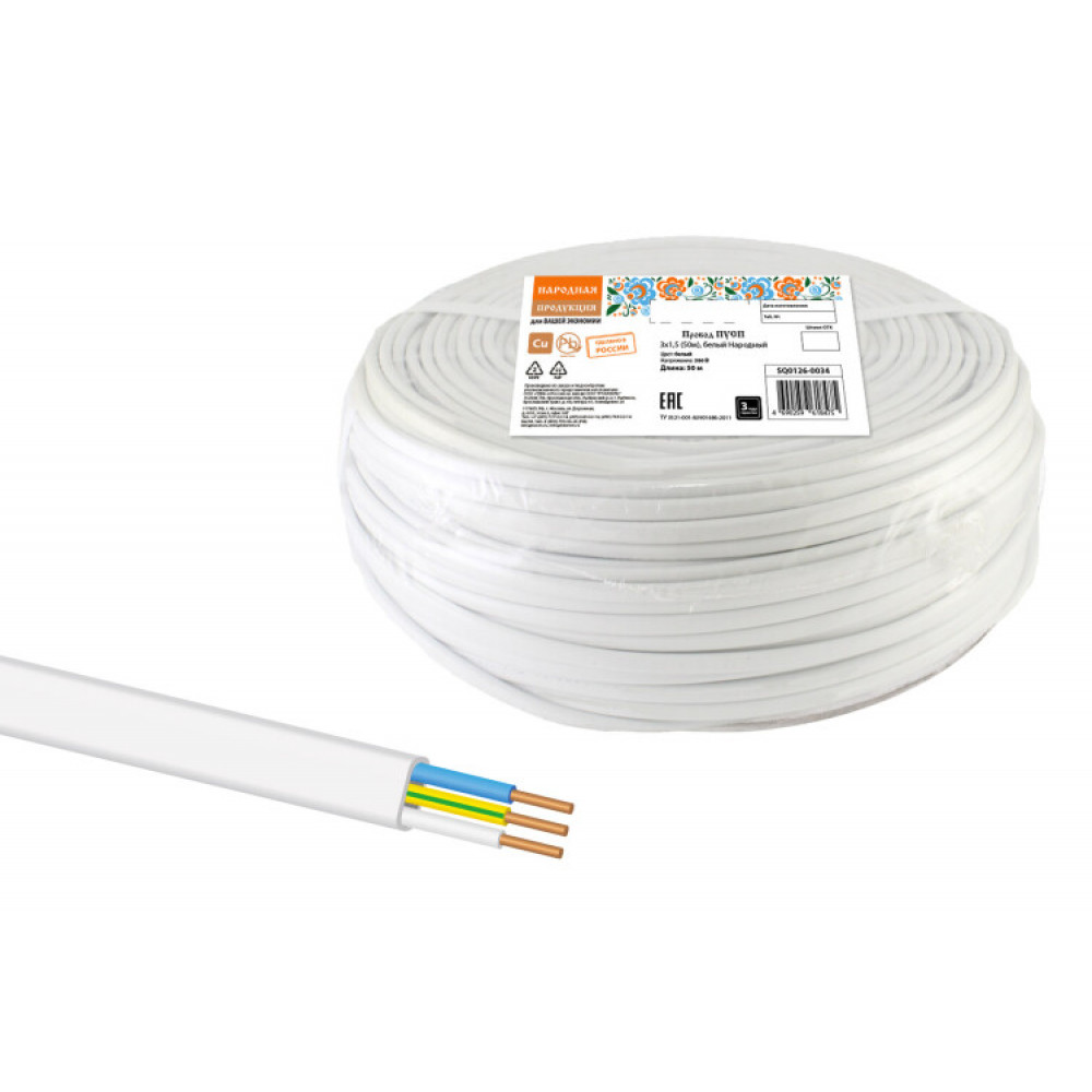 Провод ПУСП 3х1,5 (50м), белый Народный SQ0126-0034, Кабель и провод силовой для стационарной прокладки