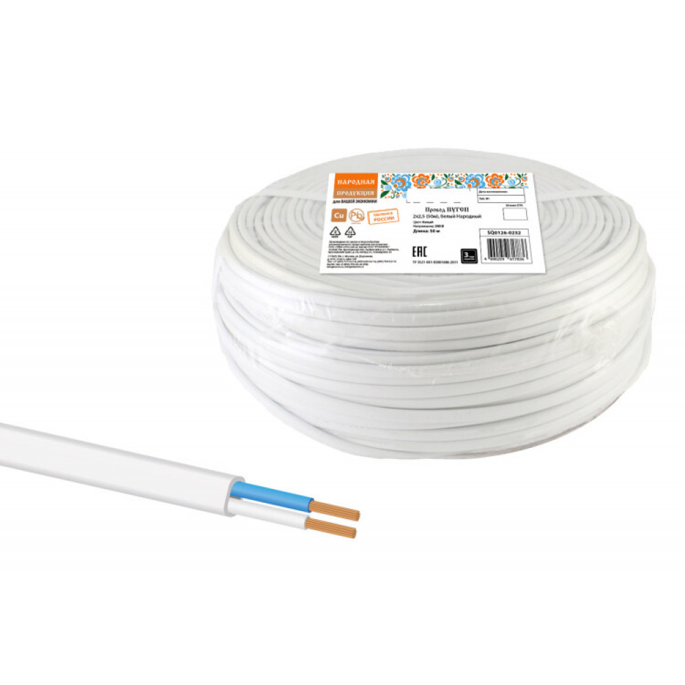 Провод ПУГСП 2х2,5 (50м), белый Народный SQ0126-0232, Кабель и провод силовой для стационарной прокладки