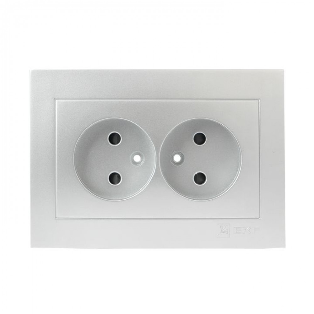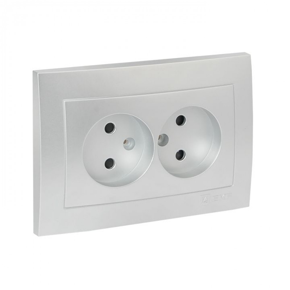 Валенсия лицевая панель розетка 2-местной б/з 10А сталь с защ. штор. PROxima ESR10-L-102-30, Розетка скрытого монтажа