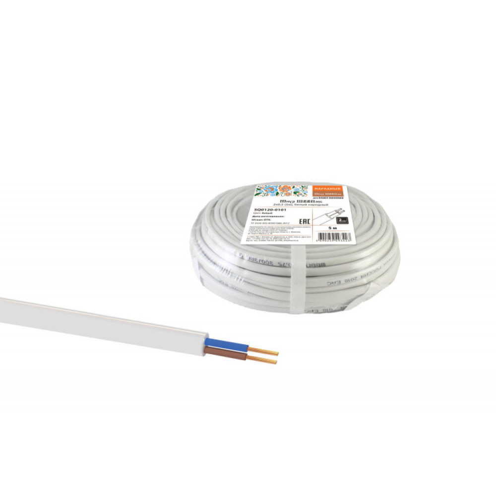 Описание Шнур ШВВПмб 2х0,5 (5м), белый Народный SQ0120-0101