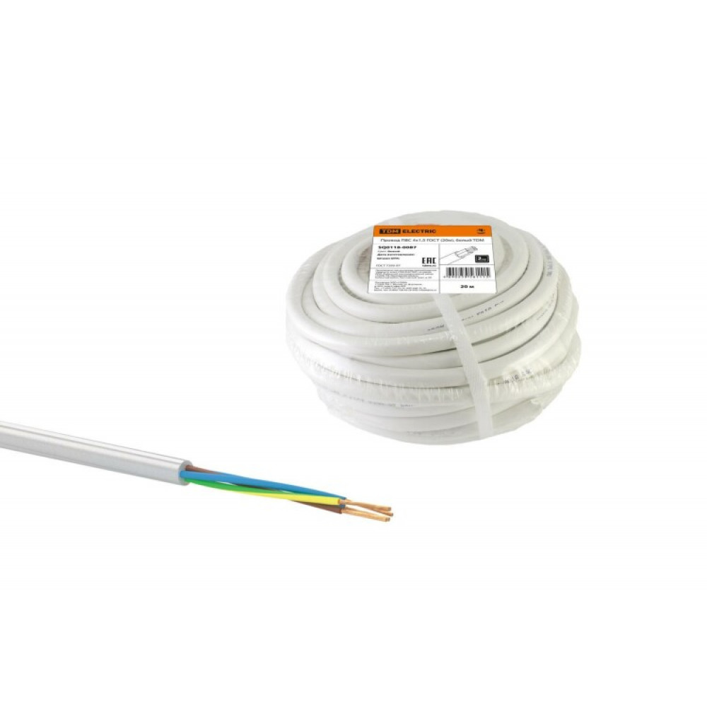 Провод ПВС 4х10 ГОСТ, белый SQ0118-1008, Кабель и провод силовой гибкий