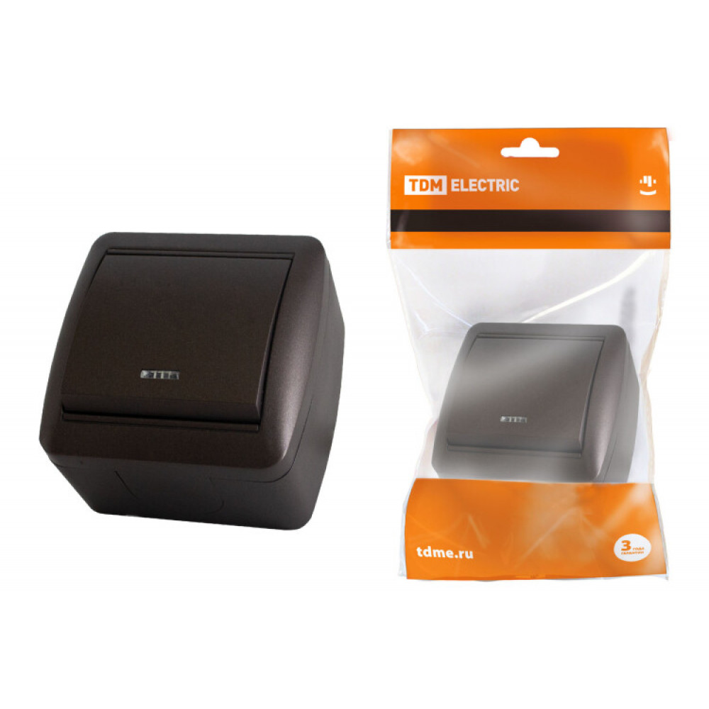 Выключатель 1-кл. открытой установки с подсветкой IP44 10А шоколад "Селигер" SQ1818-0203, Выключатель и переключатель открытого монтажа
