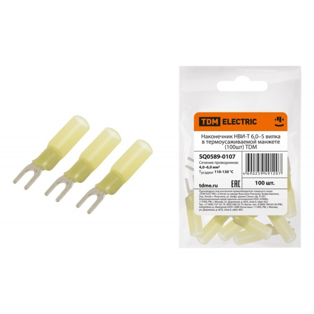 Наконечник НВИ-Т 6,0–5 вилка в термоусаживаемой манжете (100шт) SQ0589-0107, Наконечник, гильза