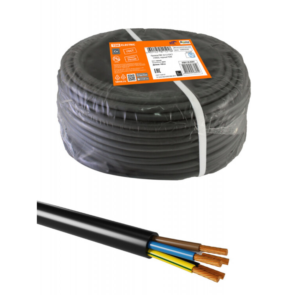 Описание Провод ПВС 5х1,5 ГОСТ (100м), черный SQ0118-0391
