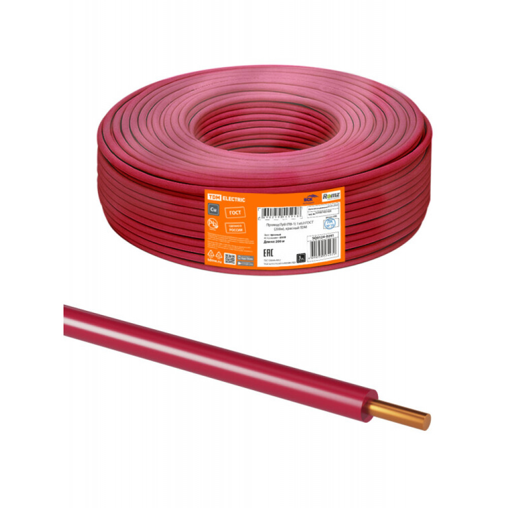 Описание Провод ПуВ (ПВ-1) 1х6,0 ГОСТ (200м), красный SQ0124-0241