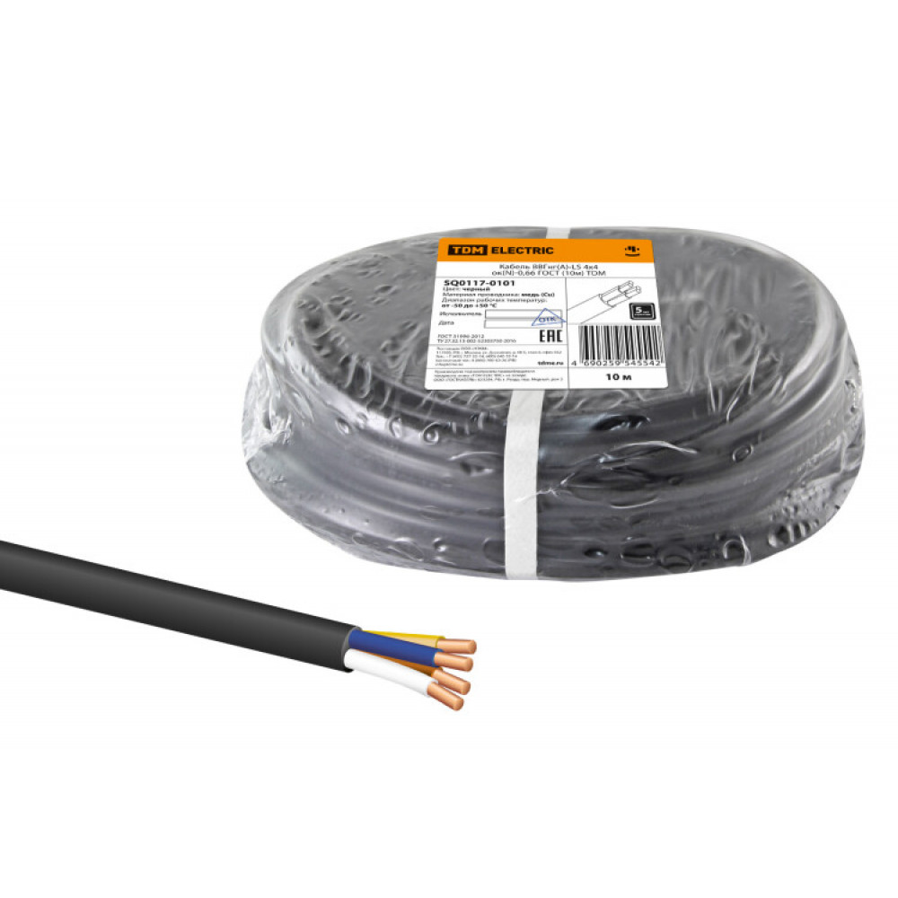 Кабель ВВГнг(А)-LS 4х4 ок(N, PE)-0,66 ГОСТ (10м) SQ0117-0101, Кабель и провод силовой для стационарной прокладки