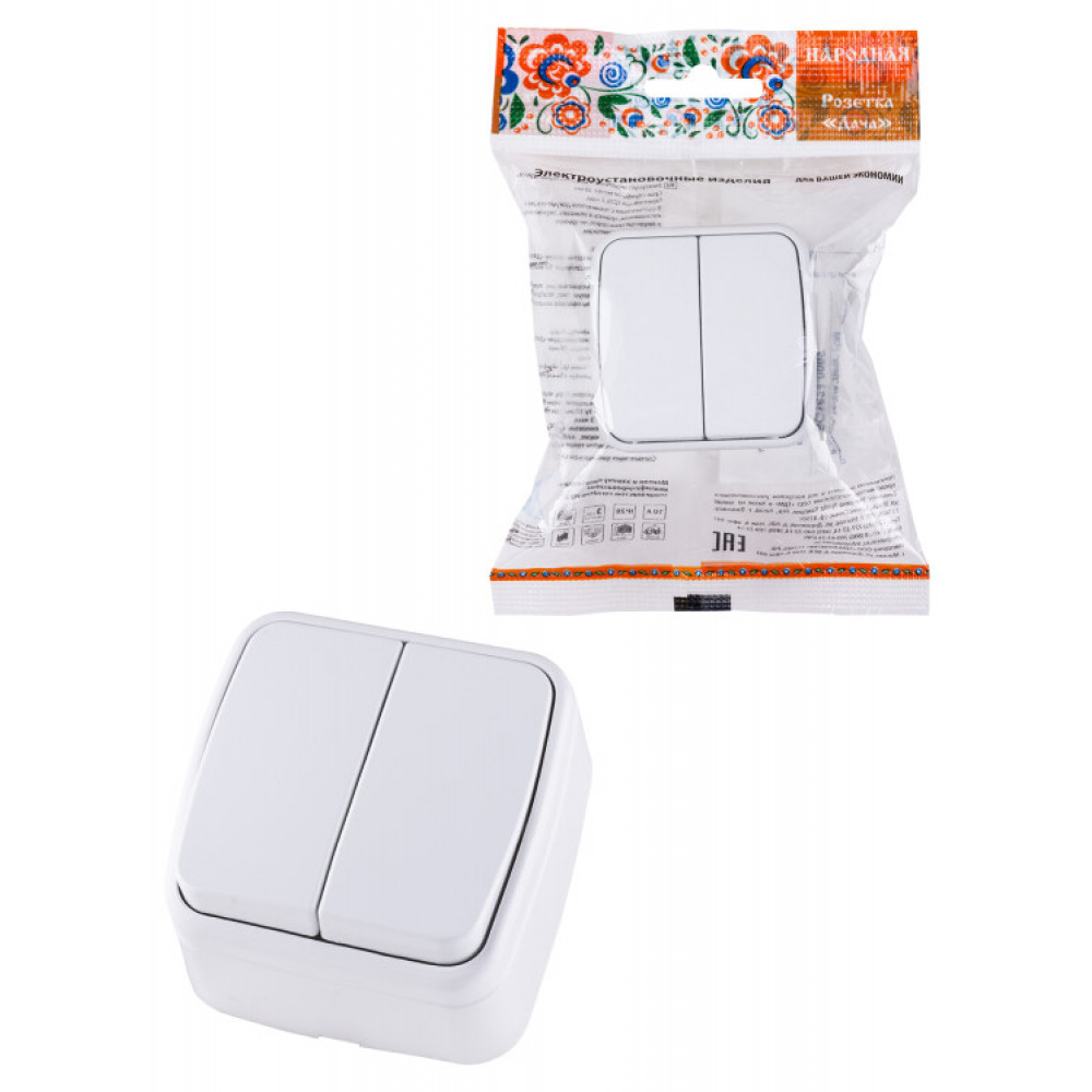 Описание Выключатель 2-кл. открытой установки IP20 10А, белый "Дача" Народная SQ1824-0002