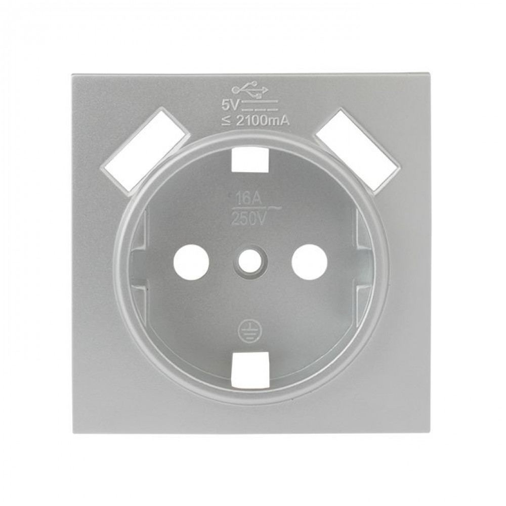 Описание Валенсия лицевая панель розетки 1-местной с/з 16А сталь с защ. штор. с 2 USB ESR16-L-028-30-2USB