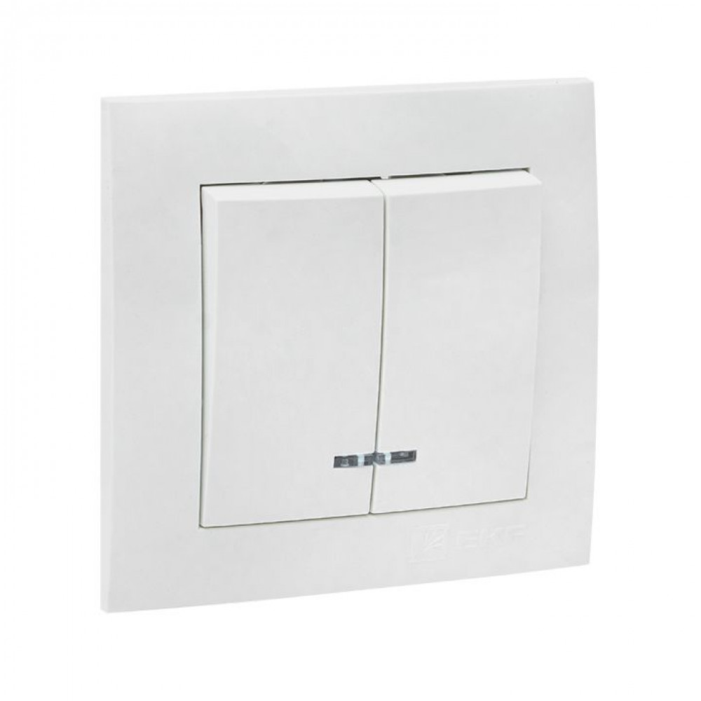 Валенсия выключатель 2-кл. 10А белый с индикатором PROxima EWV10-123-10, Выключатель и переключатель скрытого монтажа