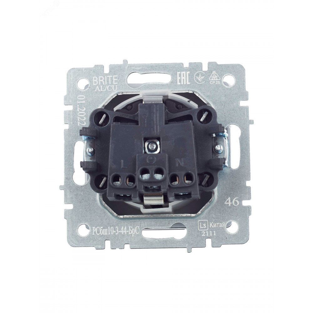 ← Розетка 1-м СП BRITE РС14-1-0-БрС 16А с заземл. защ. шторки сталь BR-R14-16-K46