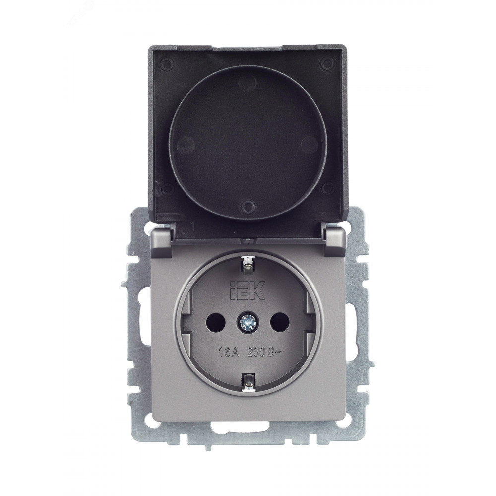 Розетка BRITE РСбш10-3-44-БрС 16А IP44 с заземл. защ. шторки с крышкой сталь BR-R16-16-44-K46, Розетка скрытого монтажа