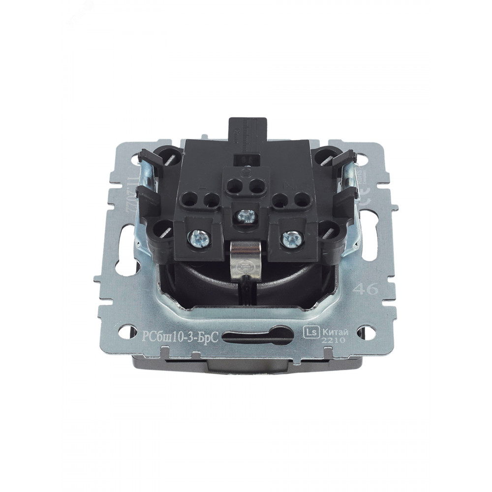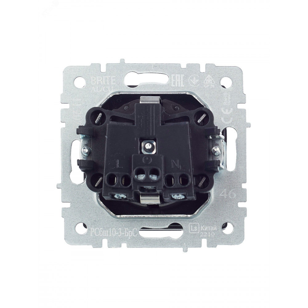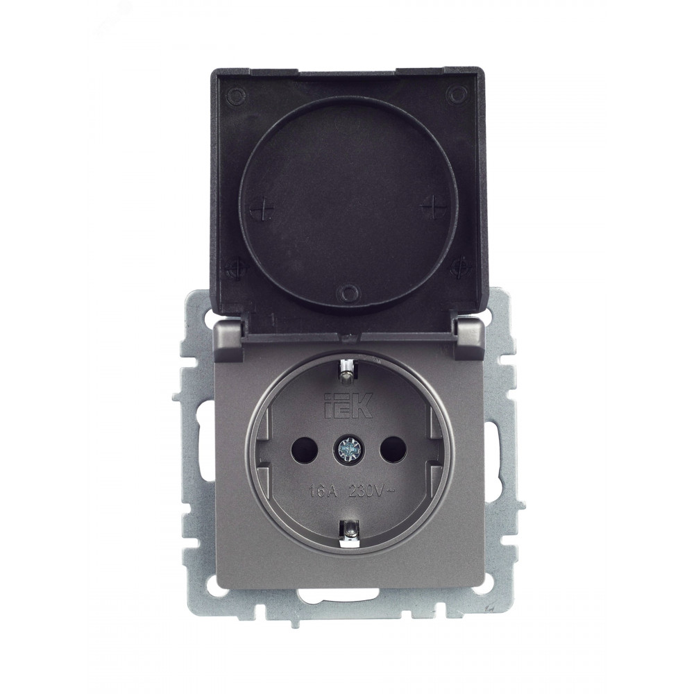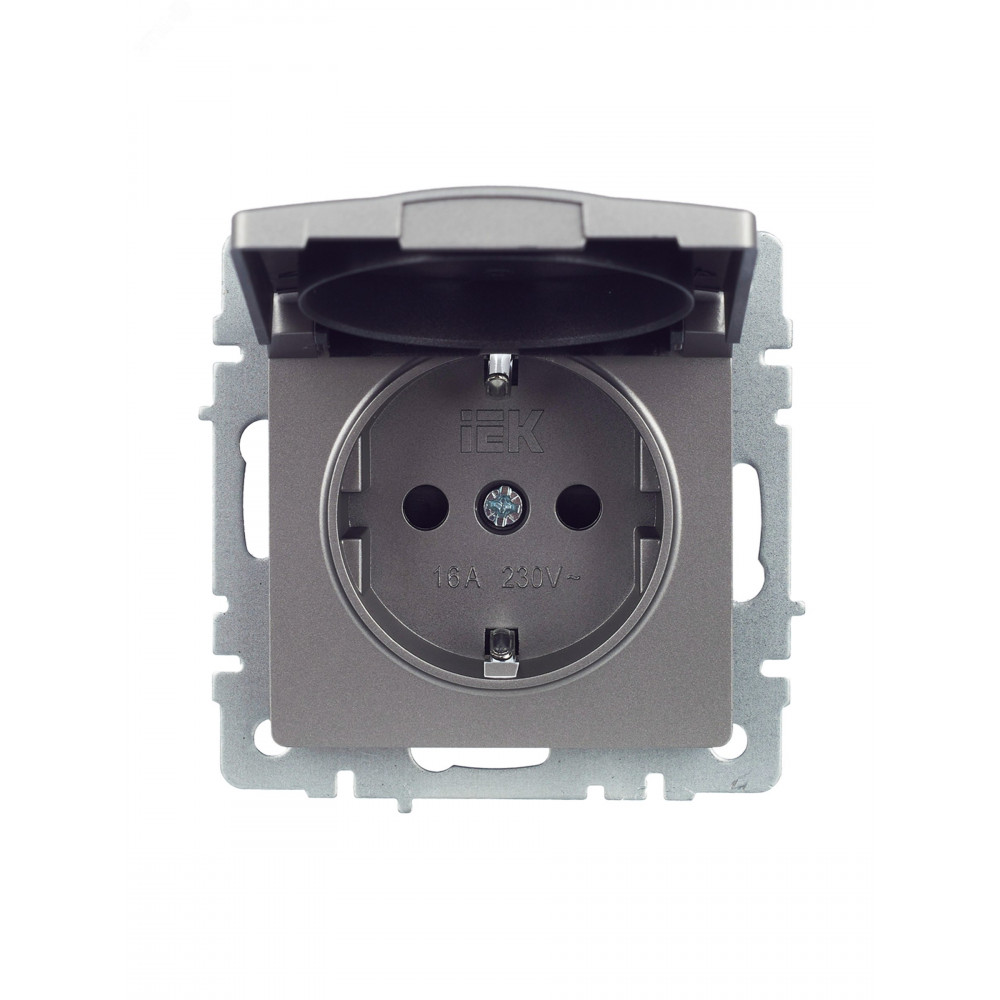 Розетка BRITE РСбш10-3-БрС 16А IP20 с заземл. защ. шторки с крышкой сталь BR-R16-16-K46, Розетка скрытого монтажа