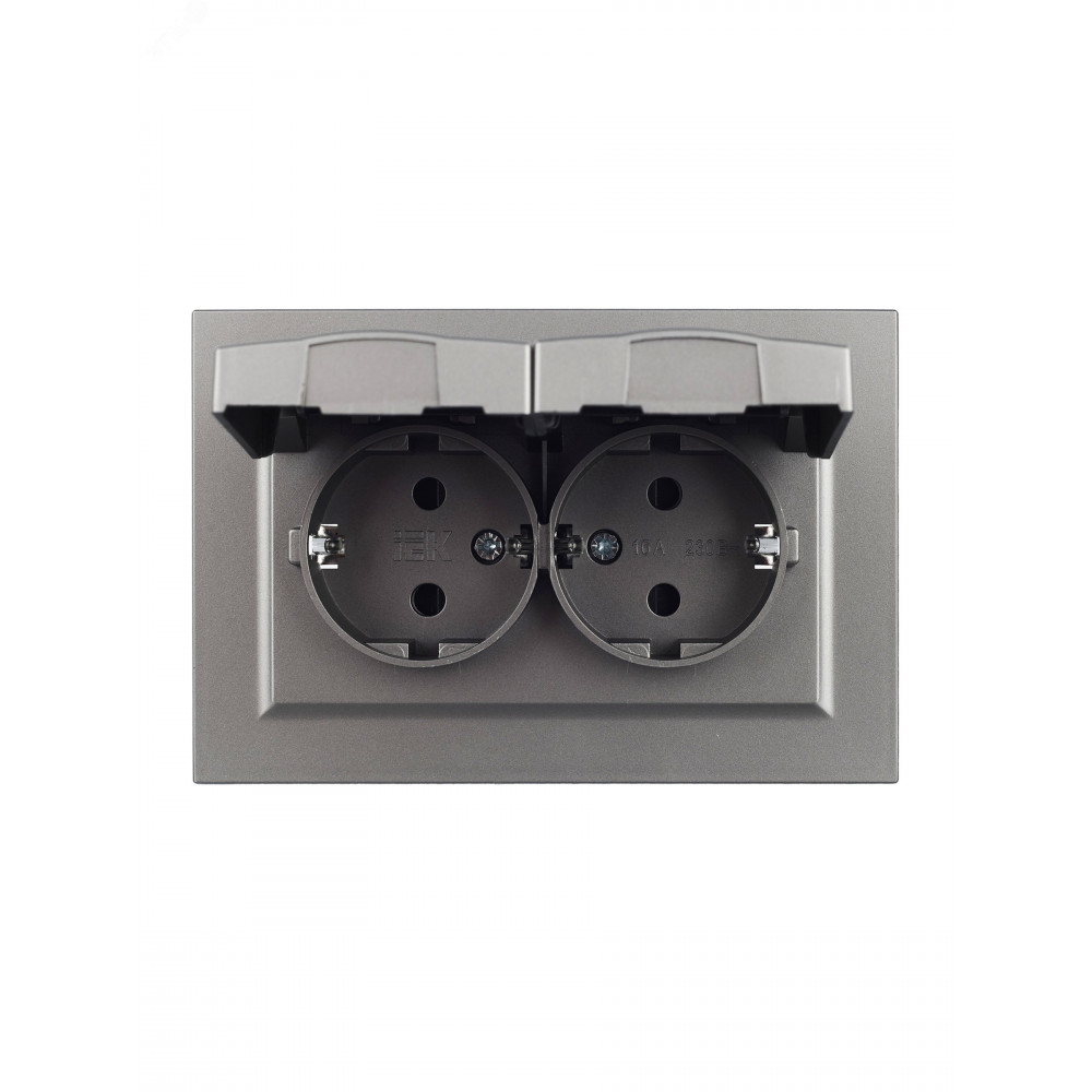 Розетка 2-местная с заземлением, с защитными шторками и крышкой 16А в сборе IP44 РСбш12-3-44-БрС, имеет цвет - сталь, изделие выполнено из высококачественного пластика. Серия электроустановочных изделий 'BRITE' IEK – это гармоничный дизайн и европейский подход, надежность в эксплуатации и привлекательная цена. В линейке 'BRITE' использованы материалы премиум-класса. Цветовая палитра и широкий ассортимент позволяют решить все задачи при строительстве и ремонте жилой и коммерческой недвижимости, выполнить современные интерьеры в едином стиле.