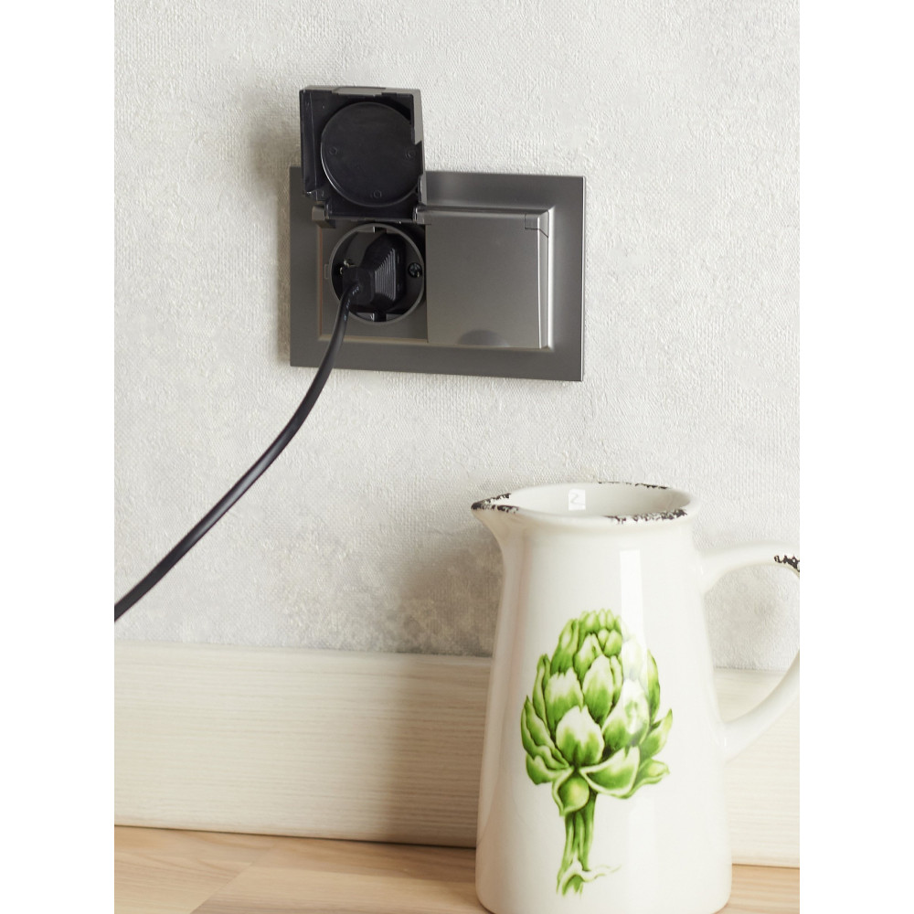 Розетка 1-м СП BRITE РС14-1-0-БрГ 16А с заземл. защ. шторки графит BR-R14-16-K53 →