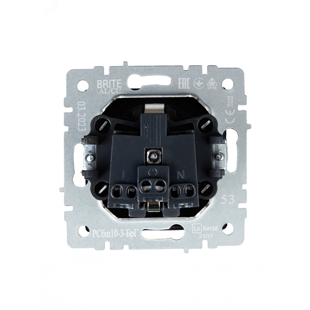 Розетка BRITE РСбш10-3-БрГ 16А IP20 с заземл. защ. шторки с крышкой графит BR-R16-16-K53, Розетка скрытого монтажа