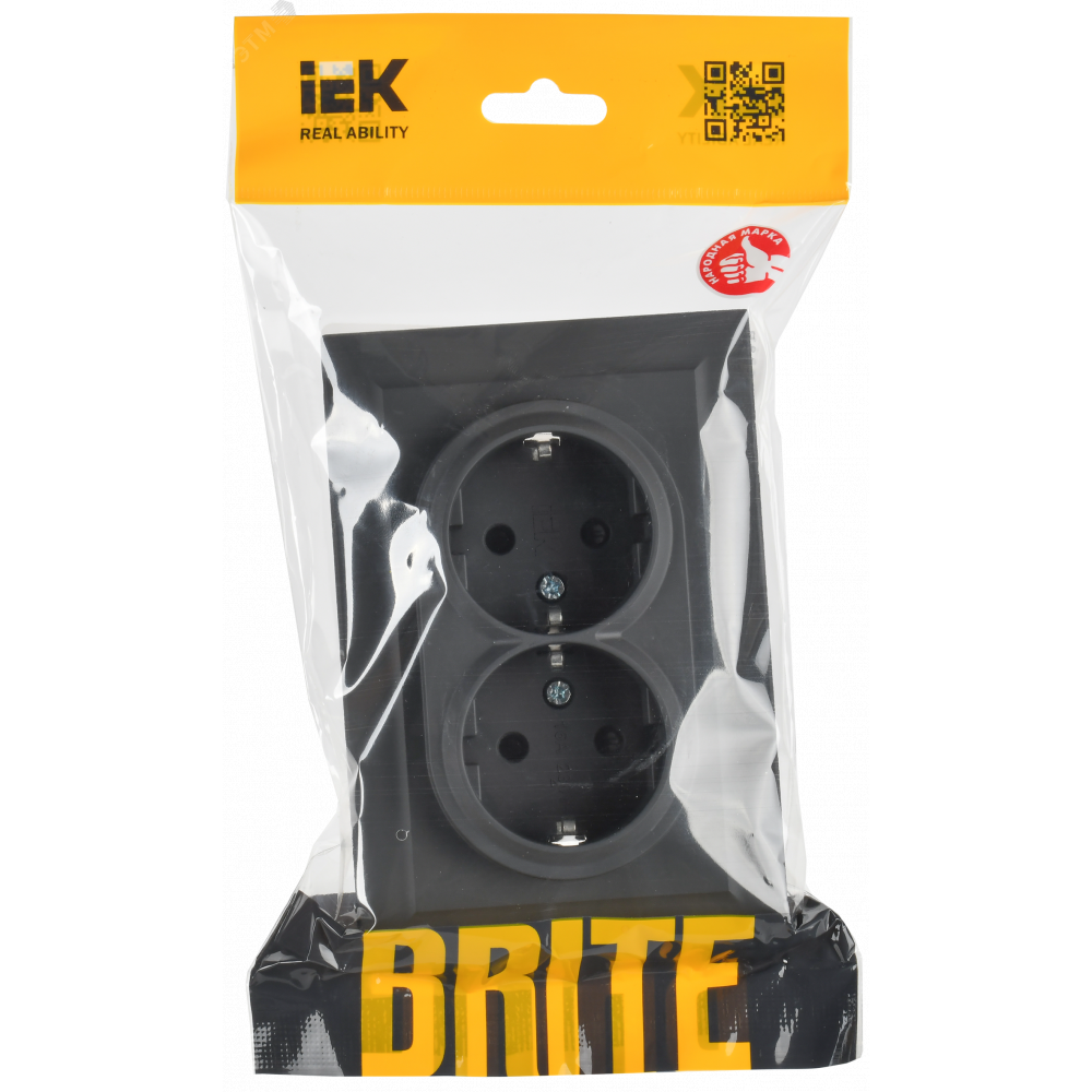 Описание Розетка 2-м СП BRITE РСш12-3-БрГ 16А в сборе с заземл. защ. шторки графит BR-R24-16-K53-F