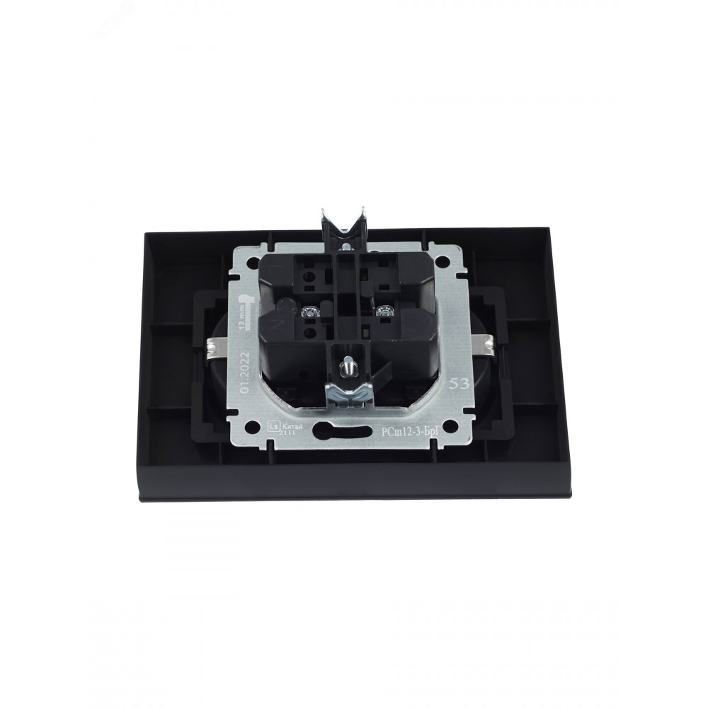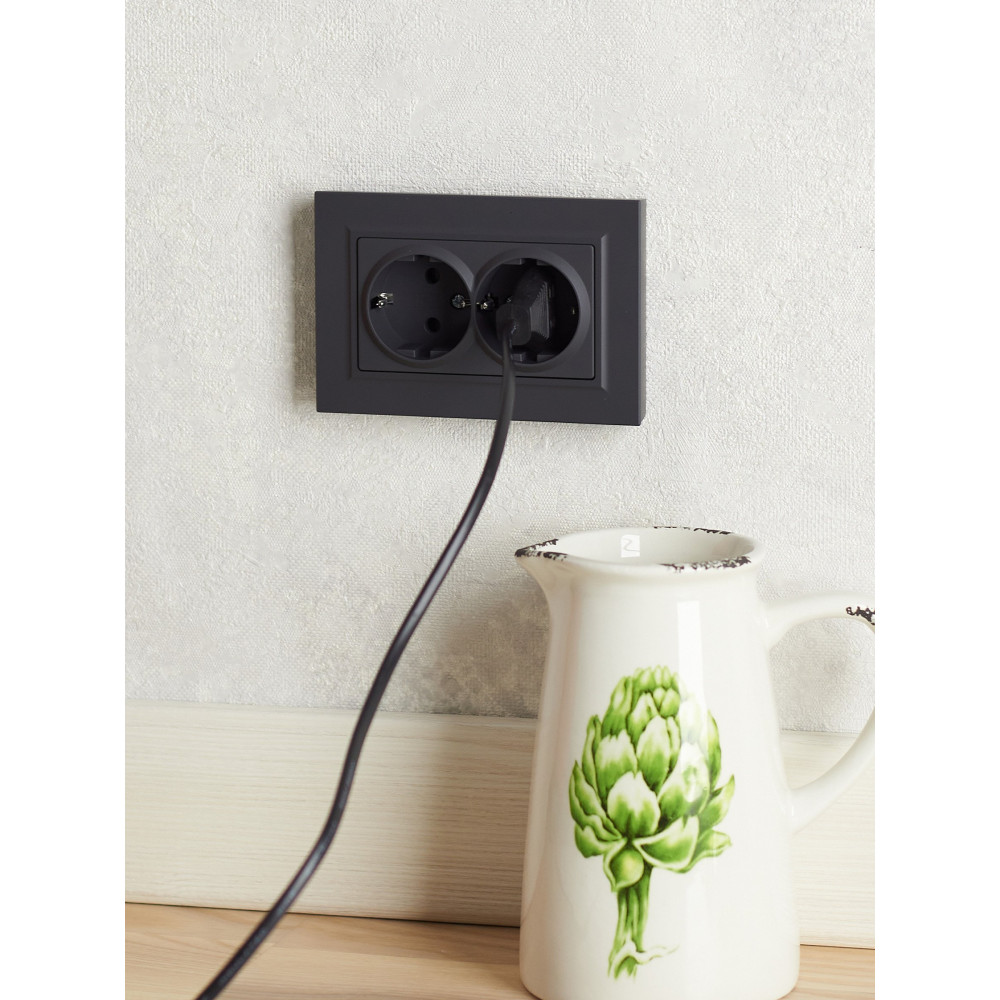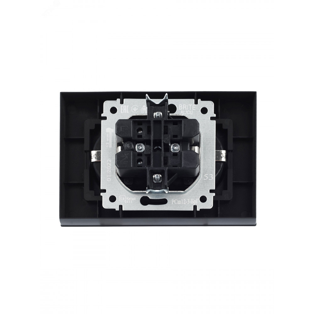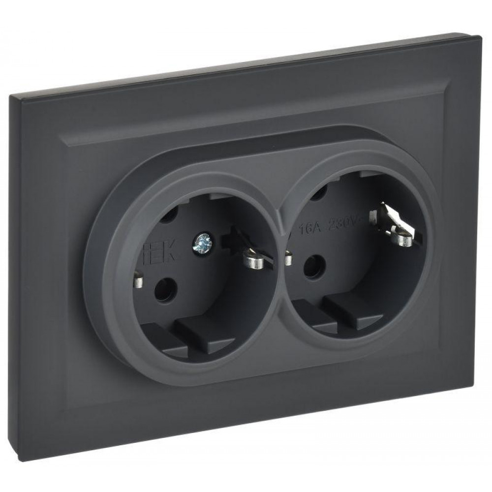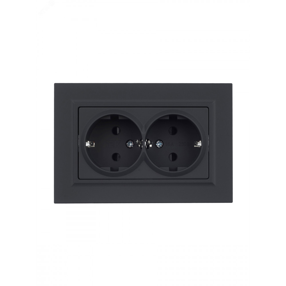 Розетка 2-м СП BRITE РСш12-3-БрГ 16А в сборе с заземл. защ. шторки графит BR-R24-16-K53-F, Розетка скрытого монтажа