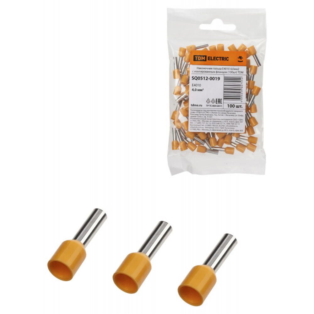 Описание Наконечник-гильза Е4010 4,0мм2 с изолированным фланцем (100шт) SQ0512-0019